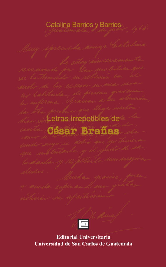 Letras Irrepetibles de César Brañas Autor: Catalina Barrios y Barrios Editorial universitaria ISBN: 978-9929-556-65-2 117 Págs. Q. 40.00